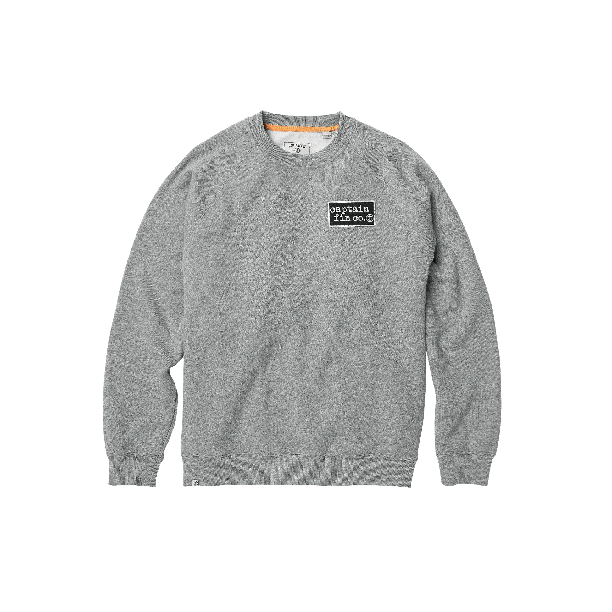 厚手のコットンと REPREVE® リサイクルポリエステル繊維の混紡素材を使用した、ラグランクルースタイルのフリース。ネック内側のコントラストテープと、左胸に Captain Fin のワードマークパッチが施されています。