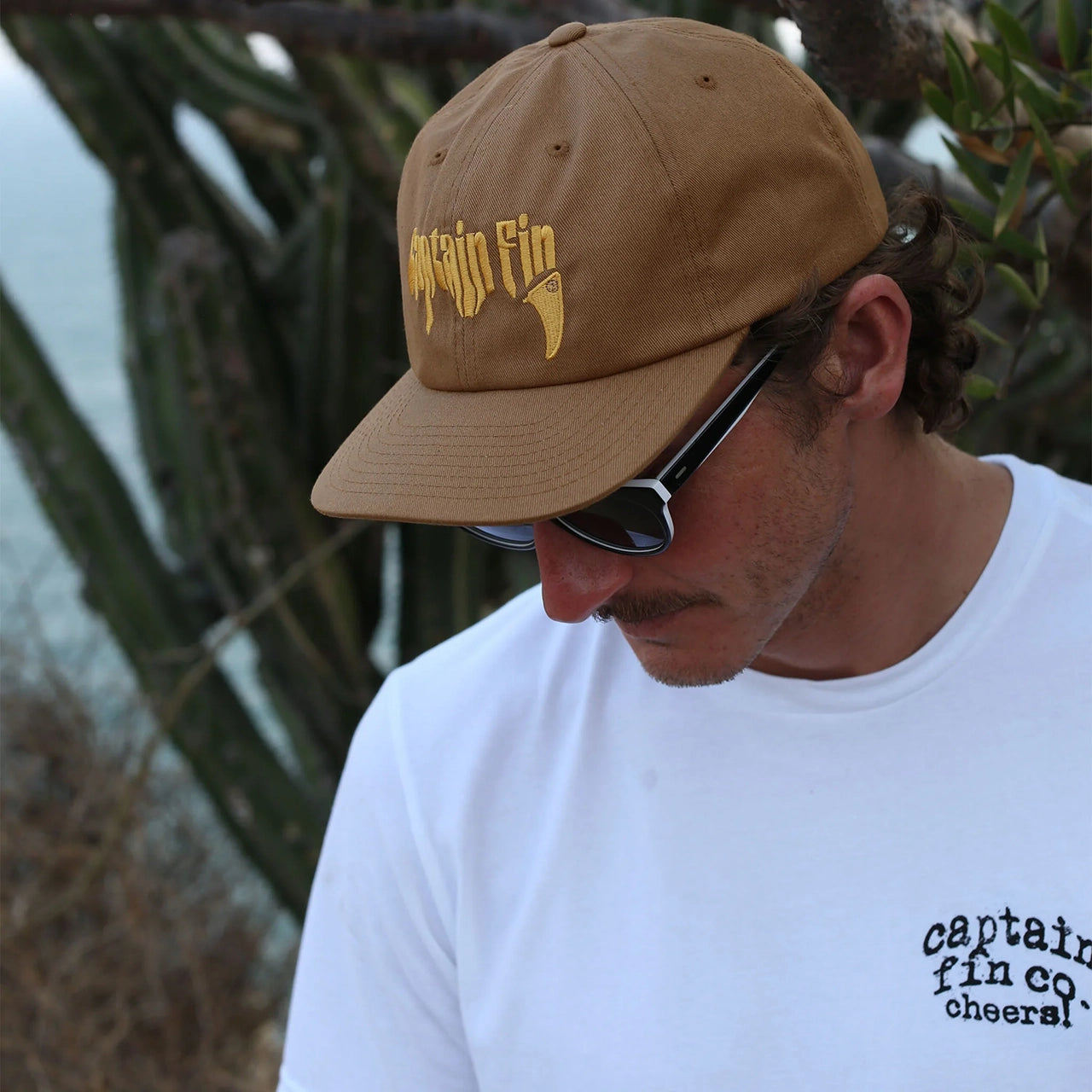 ファンガーハットは、100%コットン製の5パネル構造のアンストラクチャードキャップです。背面には調節可能なストラップ、フロントにはキャプテンフィンの牙のロゴが刺繍されています。クールでリラックスしたお父さんの雰囲気にぴったりです。